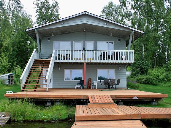 Immaculate home on Big Lake that is ready to enjoy the long summer nights. Very spacious home with seperate guest cabin that is approx. 600 sq. ft. Approx 124 ft of terrific shoreline that is beautifully landscaped and ready for swimming. Large double docking system for boats and planes.