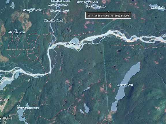 10 Acres of remote Alaskan wilderness near the Talkeetna River & Papa Bear Lake. Accessible by boat/float plane and hike in, or snowmachine in winter months. Bring your chainsaw and fishing pole and let the adventures begin. Photos are from the area, not specific to the property. Buyer to verify all information.