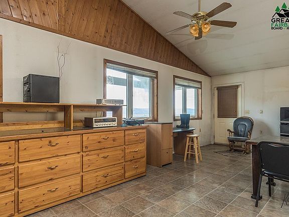 Prepare to be blown away with this property! It is not what you would expect to find hidden away on 9.3 acres in the hills above the Elliot Highway after a two-hour drive from Fairbanks. The views from the huge deck are incredible. Also, there is a dedicated enclosed wood storage building at the base of the house for the fireplace upstairs. I know what you are thinking, what a hassle to haul firewood up those stairs, well not to worry, there is a custom dumbwaiter system that will bring the wood up to the top floor with ease. Vaulted ceilings, custom wood accents throughout, plenty of built in storage, and a breakfast bar are just a few of the features you will discover as you walk through your new home. The downstairs garage is oversized to say the least. And if that isn’t enough the detached shop is perfect for all your projects. There is a well thought out solar, wind, and generator system to power everything. You must go see this one yourself and experience the whole property and all it has to offer. It is well worth the drive! This property is being offered AS-IS.