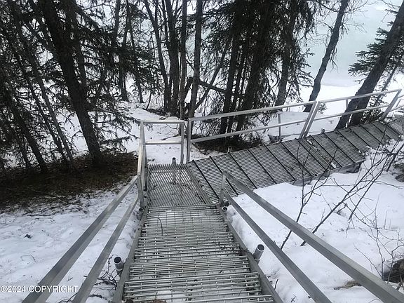 large Kasilof River lot with 150' of River frontage. Metal stairs to fishing platform for easy access. Beautiful River and partial mountain views.