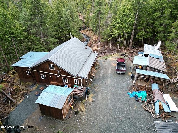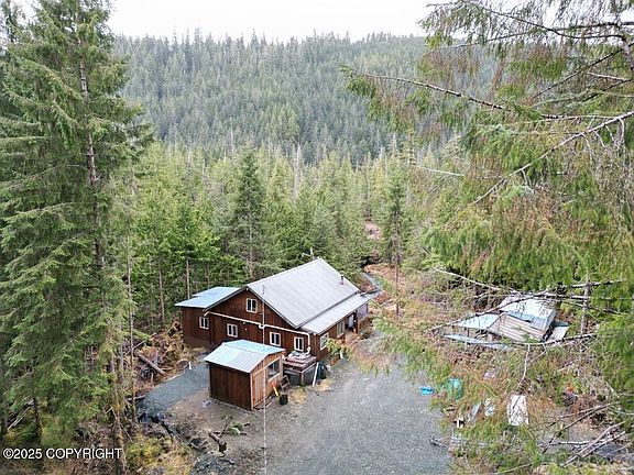 This stunning 4-acre piece of Alaska paradise is sure to impress! The 3-bedroom, 2-bathroom home offers both privacy and comfort, and you'll feel right at home from the moment you arrive. The property features grid electricity, storage sheds, a chicken coop, and a cleared second site--perfect for expansion or parking vehicles and equipment for your island adventures.Nature enthusiasts and fisherman alike will be thrilled with Whale Creek meandering through the property, offering you the opportunity to salmon and trout fish right from your front yard. Experience year-round comfort with a propane fireplace in the master bedroom, complemented by a wood stove and an additional Wi-Fi-enabled Toyo stove in the family room. This home has been well maintained and was re-stained in 2024. A small cabin is ready to be finished off for your guests or keep it as is for additional storage. The deck provides a perfect spot to relax while you enjoy the beauty of wildlife and the surrounding natural vistas. Conveniently located just one mile from Davidson Landing, you'll have immediate access to ocean fishing, crabbing, and whale watching experiences. This Thorne Bay gem invites you to fully embrace the lifestyle you've always dreamed of. No property tax! Don't miss the opportunity to make this exceptional property your own!