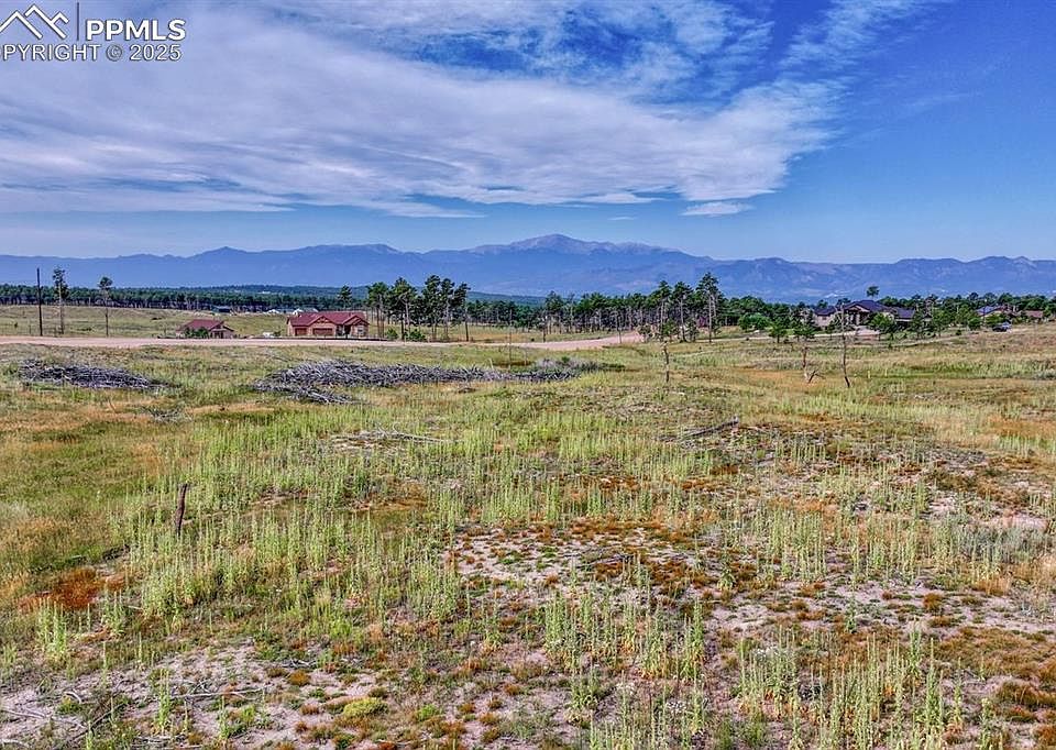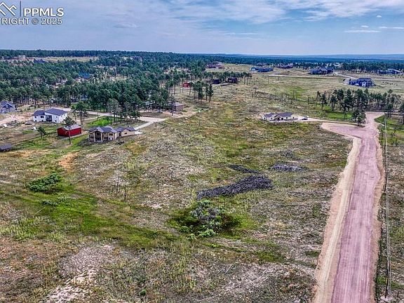 5 acres treed and meadow and jaw dropping, phenomenal Pikes Peak and mountain views located in sought after and close-in south Black Forest. Gorgeous mature Ponderosa Pines and lush green meadows. Fiber optic internet is available. Close proximity to Award winning School District 20. No covenants or HOA. Horses, outbuildings, chickens and other animals are allowed. Walking distance to Section 16 and Pineries Open Space. Section 16 is 640 acres of State of Colorado owned treed open space w/ walking, biking and equine trails. Pineries Open Space features equestrian friendly trails with 1,100 acres of open space and parks. Multiple build sites with walk-out basement potential. Two adjacent parcels are also available for a total acreage of 25 acres - perfect for additional land or building multiple homes. Great access to the amenities of Powers, Woodmen and Northgate.