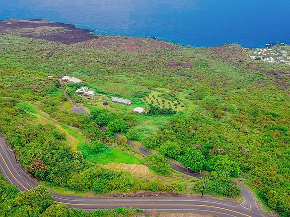 Ideally located at an elevation of approximately 1,100', this 5 acre parcel enjoys a spectacular and commanding view of the coastline and hinterland extending as far north as Kailua Bay. This elevated and very private parcel is part of a 6 lot subdivision served by a gated and paved road with easy access to Highway 11. Portions of the property have been developed, graded and are now grassed and mowable. The developed areas are connected to a driveway off the paved subdivision road. On the developed areas there are a couple of very favorable home sites as well as sufficient area for a green house, planting fruit trees and establishing raised garden beds. As for infrastructure, the subdivision is served by overhead power, land line and high speed internet. A catchment water system will be required for any residential development. The subject property is situated approximately 13 miles south of the Captain Cook township, less than 2 miles from Pebble Beach and 8 miles south of Hookena Beach.