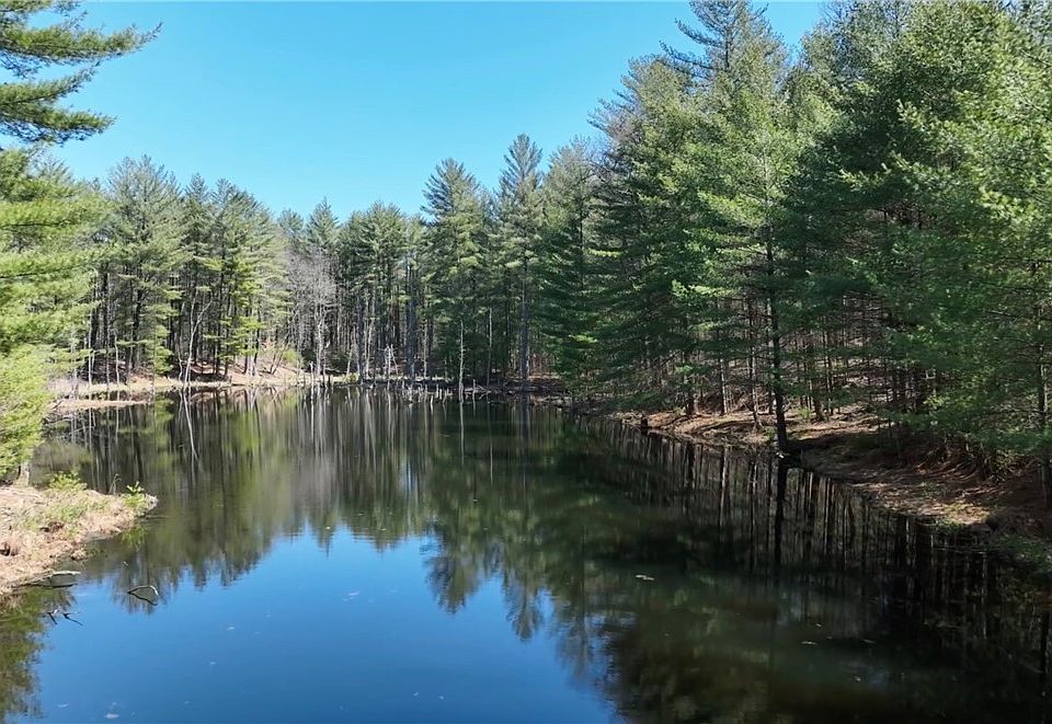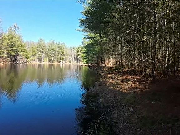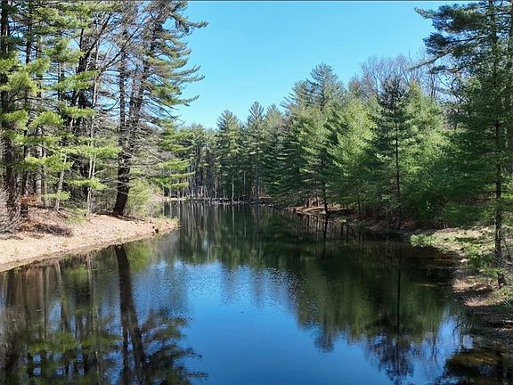 Mature forest and 350 feet of pond frontage, the property borders state forest land of over 90 acres on two sides