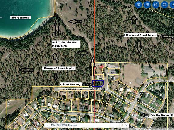 One of a kind lot perfectly situated in Rexford, Montana! Bordered by 159 acres of Forest Service and access to over 375 acres of Forest Service with a trail that goes from your lot, directly to the sandy beaches of Lake Koocanusa! The trails give you access to miles and miles of beaches and public lands. This beautiful wooded, 0.34 acre lot in Rexford is waiting for your new home or Montana getaway cabin! The lot is within walking distance (500 feet) to The Frontier Bar and Grill, 1.5 miles from Abayance Bay Marina, 5 miles from Eureka, 5 miles from Wilderness Club Resort, and 1 hour from Whitefish, MT. This lot is perfectly located to give you the access to a small quaint community, Lake Koocanusa, surrounding outdoor recreation of NW Montana, and a short drive to all that Whitefish has to offer. Rexford has a municipal water/sewer system, with no hook-up fee, and $65 monthly fee. Contact Jeffrey R. Loomis at 406.291.8851 or your real estate professional.