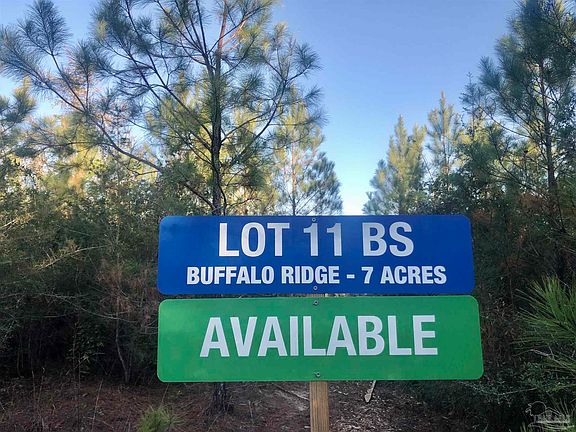 BUFFALO RIDGE PHASE 5 (THE LAST PHASE) - ADDITIONAL 28 LOTS. 7-acre lot 11 BS with dimensions 500 x 1000 feet is located on the east side of Buffalo Ridge Rd. This beautiful and private parcel has a triangle shape and is 1200 feet long along Glacier Dr. This homesite has about one acre cleared at the top of the property. From the first clearing, you get the second portion of the lot that has mature hardwood trees, including oaks and magnolia trees. Lastly, there is a third section on the east side of the parcel with additional 3.5 to 4 buildable acres. This lower section could be a great spot for the future house and additional outbuildings. Some of the rarest land in Northwest Florida is now available for you to own in the planned community of Buffalo Ridge. Enjoy rolling hills, flowing creeks, beautiful oak trees, grassy meadows, and the unique serenity Buffalo Ridge Phase 5 parcels provide. Buffalo Ridge is located only minutes away from the convenience of Pace shopping and local restaurants. Situated on one of the highest points in Santa Rosa County, Buffalo Ridge provides twenty-mile views. The community has paved & curbed roads and AT&T fiber optic. Buffalo Ridge is designed to be a responsible residential development preserving West Florida natural beauty and wildlife. This special neighborhood offers privacy with convenience and provides stunning sunset views from its high elevation. Buffalo Ridge is situated about an hour away from The Gulf of Mexico including popular beach resort communities such as Pensacola Beach and Perdido Key.