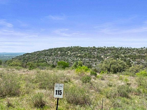 Unbeatable Value—Nearly 4 Acres with Sweeping Hill Country and Lake Views! Discover one of the best-priced properties in the Hill Country for size, location, and features. Tucked at the end of a peaceful cul-de-sac in the prestigious Big Creek Ranch community, this 3.95-acre lot showcases panoramic views of the surrounding hills and lake that are nothing short of breathtaking.Enjoy a private, park-like setting that backs to a greenbelt and seasonal creek—creating a tranquil natural retreat dotted with mature oak trees. The property offers endless possibilities for your custom home and is ready when you are with both water and electric meters already installed. Big Creek Ranch owners enjoy access to the resort-style clubhouse, infinity-edge pool, and community water system—making it an ideal blend of luxury and nature. Opportunities like this are rare—spacious land, stunning views, and prime location all in one package. Whether you’re ready to build your dream home or invest for the future, this property delivers exceptional value, versatility, and Hill Country beauty.