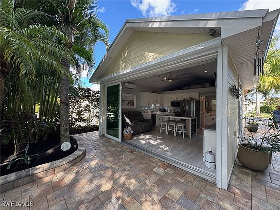 Lot 12 - Riverbend Motorcoach Resort Experience the epitome of luxury and tranquility on this captivating waterfront lot! Nestled under the cooling shade of a majestic banyan tree, Lot 12 offers a picturesque escape surrounded by natural beauty and modern elegance. This lot is fully paved with a charming knee wall that adds a polished finish to the very private outdoor space, while refreshed landscaping and fresh mulch keep it looking pristine. Step inside the spotless coach house, where every detail has been meticulously maintained to feel brand new. The versatile layout offers a cozy spot for TV viewing from the couch, while the stylish bar height table with seating for six effortlessly doubles as a dining area or buffet for entertaining. The kitchen boasts stunning waterfall-edge countertops, stainless steel appliances, and ample prep space, perfect for all your culinary needs. The bathroom layout is as functional as it is beautiful, with thoughtful storage solutions to keep everything tidy. You'll even find a convenient folding area with storage underneath, adding extra practicality to this stunning space. And as a bonus, this property includes all interior and exterior furniture (except the outdoor dining table and 6 chairs) and comes complete with a golf cart for easy access to the resort’s amenities. With breathtaking views of two fountains and a charming walking bridge, this lot truly captures the essence of serene, riverside living. Don’t miss the opportunity to make Lot 12 your perfect getaway! Our resort is nestled along the picturesque Caloosahatchee River, Riverbend Motorcoach Resort offers an idyllic retreat with exclusive access to its own private boat ramp. When the season is in full swing, you'll find a captivating array of amenities: an exhilarating R/C car track and R/C boat launch for thrill-seekers, as well as classic games like horseshoes, bocce ball, and shuffleboard for those who enjoy friendly competition. Refine your skills on the putting green, dive into the refreshing lap pool, or relax in one of two inviting hot tubs. The Pool Clubhouse and Pool Bar provide serene escapes, while the River Clubhouse invites you to unwind at a vibrant bar and socialize with fellow guests. For fitness and fun lovers, there are yoga classes, crafts, mahjong, and a dedicated dog park. Challenge yourself on one of the 8 pickleball courts, or enjoy a game of billiards in the comfortable lounge. And be sure to visit the charming Railroad Village—a unique highlight of this dynamic community. Whether you’re looking for activity, relaxation, or simply to bask in riverside ambiance, Riverbend is brimming with memorable experiences to make your season truly unforgettable.