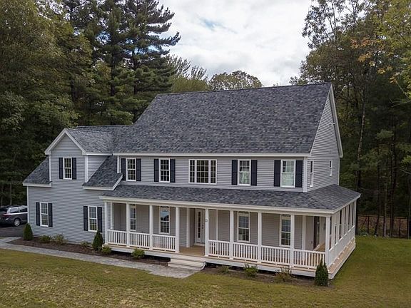 Under Construction- the "Blue Moon Plus". The "plus" includes Hardwood first floor and main stairs, designer level 1 kitchen, and fireplaces in the family room and master suite! You'll have beautiful views from your wrap-around covered porch with over 4 acres of woodlands to call your own. Choice of cabinets, granite tops and flooring from builders selections for limited time- once construction advances the selections will have to made. 28 lot family neighborhood on Hudson-Marlborough line- with great commuter access I-495/ I-290, nearby Solomon Pond Mall, Assabet River rail trail, restaurants,grocery stores & shops, schools & more!