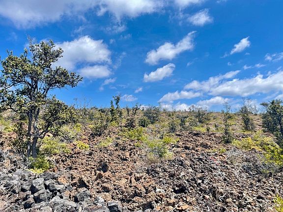 One of the best values in Hawaiian Ocean View Estates! This acre has Ohia trees and pahoehoe lava. Very pretty lot with areas of deeper soil, lots of Ohia trees and other plants. Smooth pahoehoe lava and area where the lava looks like fallen Rees. Very unique setting and some ocean views! Cool clear nights make for wonderful stargazing. Go green here with solar or wind power generation. Fantastic 360 degree views from this very special one acre parcel. Add this property to your bucket list and grab your own slice of the Hawaiian Paradise!