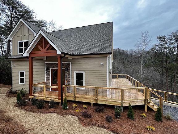 Spectacular views of Brasstown Bald from nearly every room! This new construction home features an open floor plan with beautiful views of the Blue Ridge mountain range. Oversized master with double vanities, generous shower and beautiful Hickory flooring throughout. Home has Smart Home features with additional options for security and a zoned HVAC system for maximum comfort! Hiawassee offers many options for outdoor fun and the Georgia Mountain Fairgrounds where you'll find affordable concerts and events all year round. No HOA or rental restrictions, great for Airbnb or VRBO. Buyers receive $10K in seller incentives for interest buy down or closing costs.