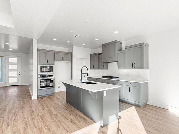 Discover this modern 4-bedroom home is perfectly designed for style and functionality. The open-concept floor plan features painted cabinets, upgraded flooring throughout, and premium countertops, creating a bright and inviting living space. The spacious 3-car garage offers ample storage, while the covered patio provides the perfect spot for outdoor relaxation or entertaining. Nestled in the desirable new Finley Farms development, this home combines contemporary finishes with the comfort and convenience of a prime location. Ask about available lender incentives. Buyer and agent to verify all information.