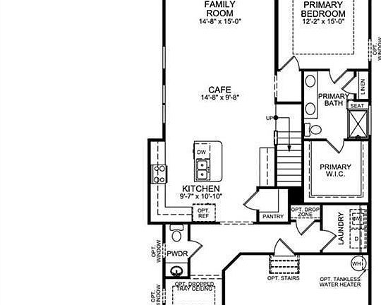 First-floor primary suiteKitchen with islandBreakfast areaSpacious family roomPowder roomWalk-in closetLaundry area