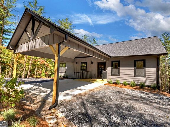 Experience brand-new construction and refined mountain living in this thoughtfully designed single-level residence, perfectly blending modern comfort with timeless appeal. Step inside to a bright open-concept floor plan where the gourmet kitchen takes center stage, complete with a large island, stone countertops, stainless appliances, and custom cabinetry. The dining area flows seamlessly into the living room, anchored by a sleek contemporary gas fireplace, creating the perfect environment for both intimate evenings and effortless entertaining. The indoor living space opens up to the living space outdoors with a large covered deck, where you can enjoy serene views of lush forestry and a private, landscaped yard. The home offers three spacious bedrooms and two designer bathrooms, each curated with custom cabinetry, elegant tilework, and sophisticated lighting. A generous laundry and pantry room adds convenience and function. Designed for ease of living and a low-maintenance lifestyle, the home features wheelchair accessibility, a circular drive, professional landscaping, and an attached two-car carport. Under the home is a standing level crawlspace for plentiful storage. Just moments from Downtown McCaysville, Blue Ridge, and all the recreation, dining, and lifestyle amenities of North Georgia, this property offers both practicality and luxury. Professionally staged and offered with furnishings available for separate purchase, this move-in-ready retreat is an exceptional opportunity. Additional acreage may also be acquired, creating the option to expand your private mountain haven. Call today for an exclusive tour!