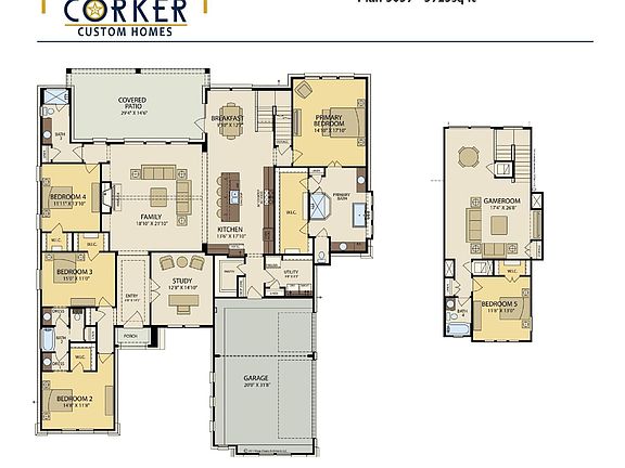 Open-concept floor planLiving and dining areasDedicated studyThree-car garageCovered patioUpstairs game roomOversized walk-in closet