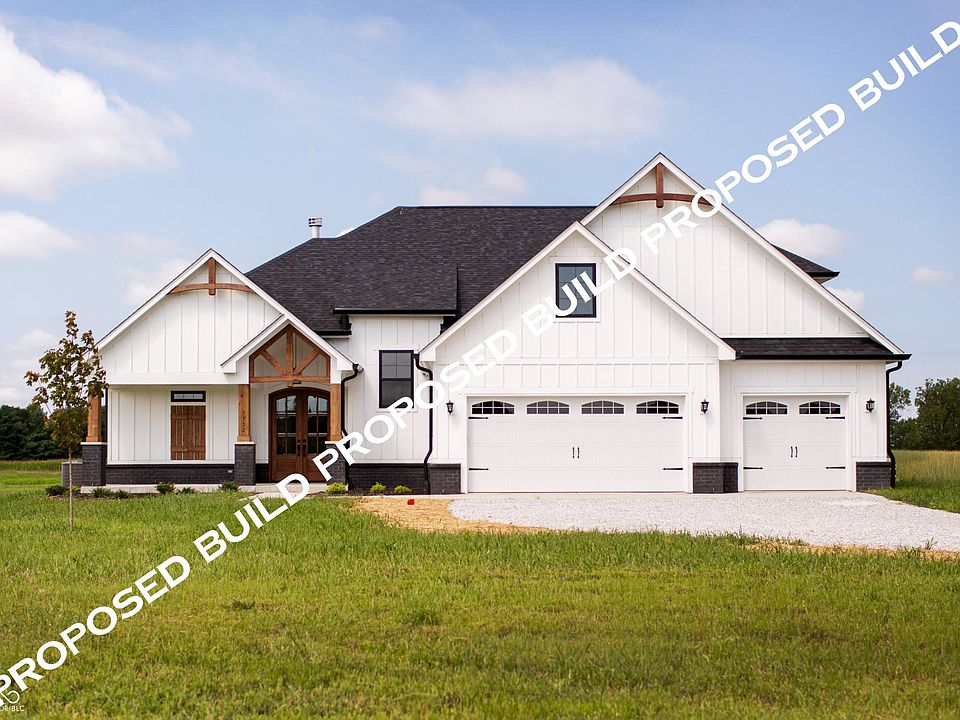 Proposed Build by Joyner Homes - The Timber Escape on Lot 2 (1.5 Acres). Welcome to Rockfield Estates in the New Palestine School System, a custom neighborhood featuring 1.5 to 2.0 acre lots designed for space, privacy, and community living. This proposed build offers 3,008 square feet with 5 bedrooms, 3 bathrooms, and a 3-car garage. The home is designed with an open-concept floor plan highlighted by a two-story great room, vaulted ceilings in the Owner's Suite, Veranda, Screened Porch, and Great Room, 9-foot ceilings on the main level, 8-foot ceilings upstairs, and built-in mudroom cubbies for everyday organization. The main floor includes a spacious kitchen with center island and pantry, dining nook, laundry, mudroom, and an Owner's Suite with private bath and walk-in closet. Upstairs features additional bedrooms, a loft with balcony overlook, and open views to the main level. Buyers have the opportunity to personalize their home with optional upgrades such as a screened porch or veranda, hearth room fireplace, patio or grill porch, bonus room above the garage, and built-in laundry enhancements. Rockfield Estates combines the charm of country living with the conveniences of suburban life, all within the highly sought-after New Palestine Schools. Plus, the neighborhood will soon have access to the Pennsy Trail, connecting you to miles of scenic walking, running, and biking paths. At Joyner Homes' Design Studio, you can customize finishes, materials, and selections to make this Timber Escape uniquely yours. Rockfield Estates 3600 W 100 S, Greenfield, IN 46140