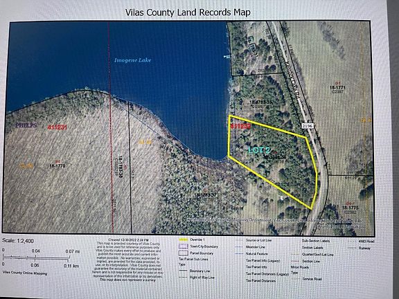 Imogene Lake is a tranquil 66 acre beauty located in the Town of Phelps at the edge of the Nicolet National Forest. This pristine gem offers a peaceful aesthetic (no gas motors), excellent water quality, 41' depth, and a fine fishery. Lot 2 has 3.09 acres, 230 feet of frontage, and westerly sunset views. Located near other notable lakes such as Kentuck and Spectacle, this location has a very special and unspoiled feel. There are additional lake lots available with varying acreage, offering the potential for a compound. A brand new survey has been completed, so grab your boots and come walk it to explore the possibilities. The Good Life is Just A Dream Away....