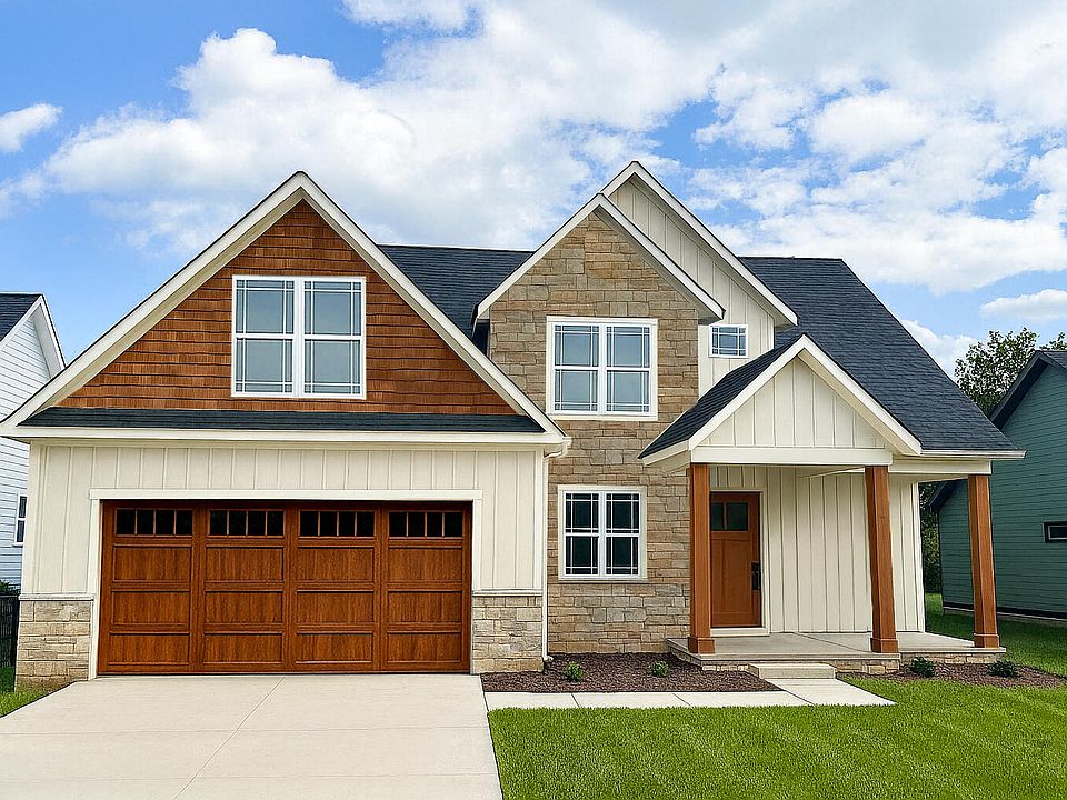 NEW CONSTRUCTION | 5 BEDROOM + BONUS ROOM - Experience timeless elegance in this stunning new construction with 5 bedrooms and 3.5 bathrooms. From the moment you walk through the impressive 8-foot entry door, you're greeted with vaulted ceilings and an open floor concept. A cozy fireplace highlights the great room, creating a warm and inviting atmosphere. The kitchen is designed to impress, featuring a massive island with plenty of seating, stylish finishes, and a generous walk-in pantry for all your storage needs. The primary bedroom is conveniently located on the main level and offers a private retreat with an en suite bathroom complete with a walk-in shower. Step outside to the expansive 34'x11' vaulted covered porch, an incredible space for entertaining guests, dining outdoors, or simply relaxing all year-round. Nestled in a highly desirable neighborhood, you'll enjoy easy access to restaurants, shopping, city parks, and entertainment. Don't miss the opportunity to make this stunning home your own!