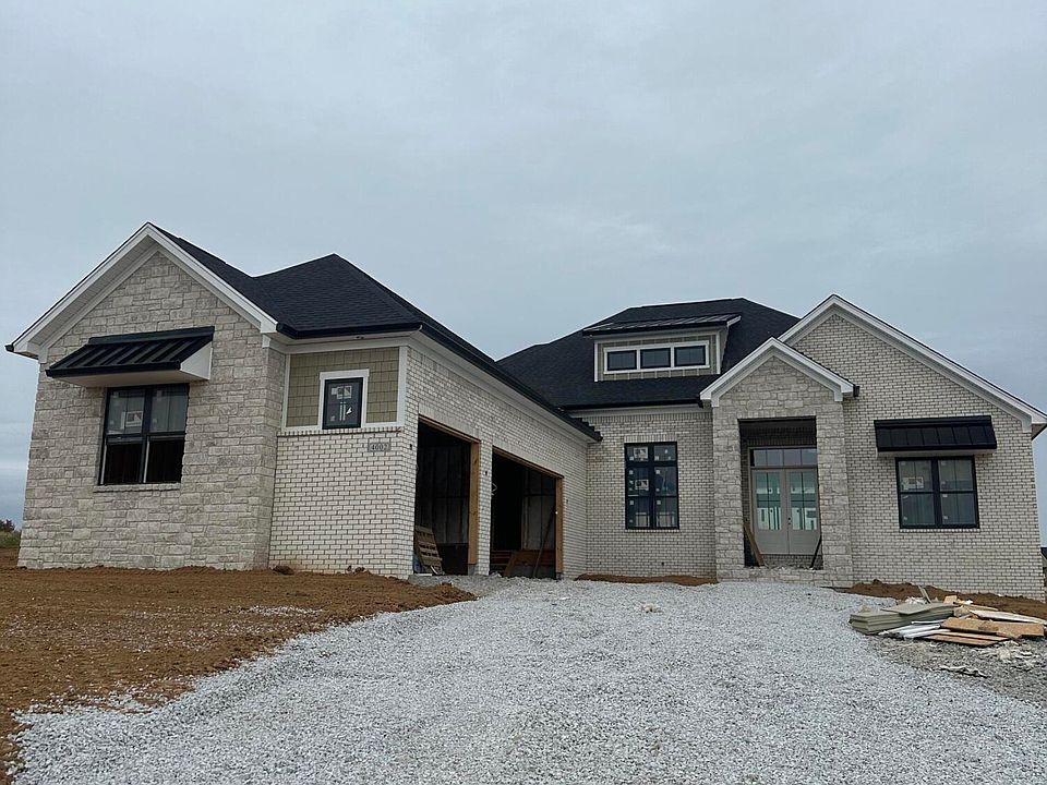 Brand New Construction! Will be finished with beautiful painted brick. Open one floor plan with 4 bedrooms and finished basement is designed for luxury living! Stunning home is perfectly situated on a large and gorgeous lot. Greet your guests at the large covered front porch and impressive entry. Kitchen is a chef's dream with tasteful island and nice appliance package, great room with coffered ceiling and linear fireplace with tile surround from floor to ceiling , tray ceiling in formal dining room, spacious primary suite with spa inspired bath, , hardwood entire 1st floor, quartz throughout, finished basement with 4th bedroom family room full bath, and bar All luxury vinyl flooring. Conveniently located pocket office at 1st floor Plenty of windows throughout for that natural light 3 car garage, Covered front and covered back porch,Irrigation system. Clubhouse, pool, tennis courts, fitness room . Make this new home yours and customize selections to your taste. Located within the award winning school district Oldham County.