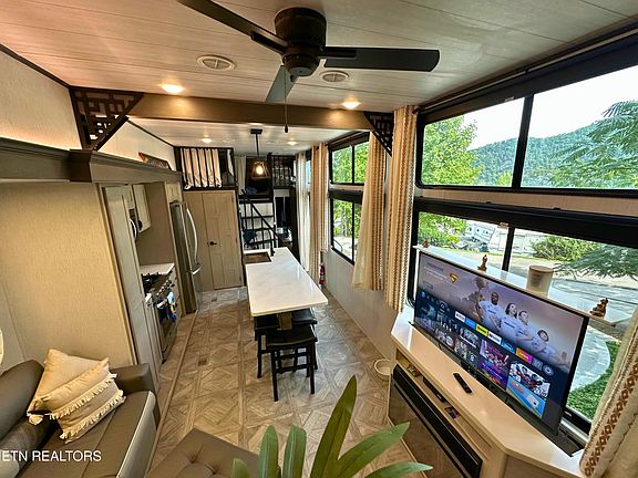 Perched atop Sundown Resort in Townsend, this exceptional lot not only delivers breathtaking mountain views, but a 2024 Forest River Grand Lodge 44VIEW — a luxury destination RV designed for comfort and convenience, conveys with the sale of the lot. With a wide-body design and multiple slide-outs, the Grand Lodge offers residential-style living with modern finishes, high ceilings, and panoramic windows that perfectly frame the surrounding mountain scenery. Inside, you'll find a spacious open-concept living area, a chef-inspired kitchen with full-size appliances, a king bedroom, 2 loft sleeping quarters, and a beautifully appointed bathroom, plus a half-bath, making it the ideal turnkey mountain retreat.
