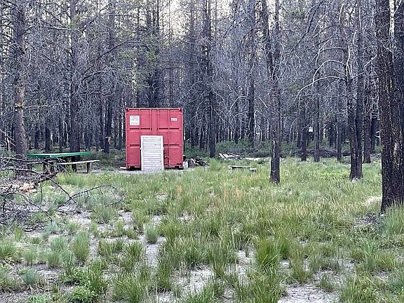 1.01 Acres, fenced, and has a customized container that doubles as a living quarters for camping. The living quarters have a second set of doors just inside the main entrance. This is well thought out and planned. Nice treed parcel with excellent road access. Power and phone are right at the road edge of the property.