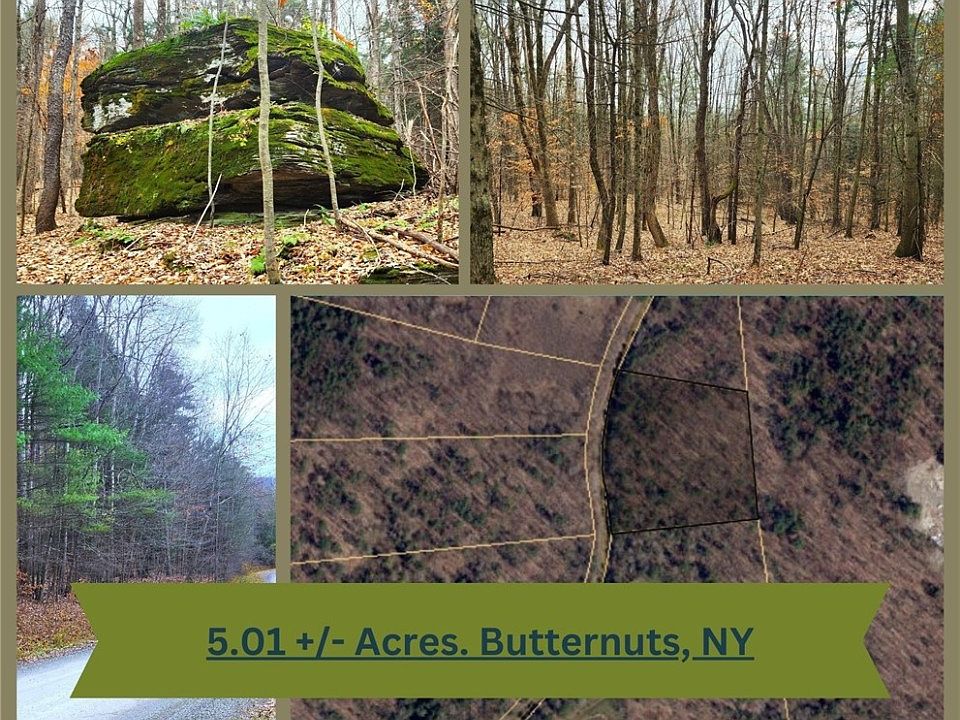 Escape to the tranquility of rural Butternuts, NY, with this hidden gem, 5.01+/- acres of pristine wooded land. Nestled on a town-maintained road in scenic Otsego County, this parcel offers the perfect blend of seclusion and accessibility. The gentle slope enhances the natural beauty of the landscape, providing an ideal setting. Create your haven amidst the woods and explore the endless possibilities this enchanting property offers. Don't miss the chance to own a piece of rural paradise. Seize this opportunity - your escape to nature awaits!