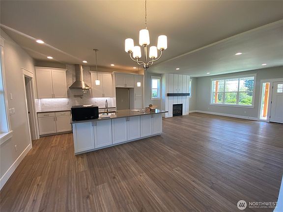 This craftsman-style house offers a comfortable, inviting living space w/ southern exposure. Step inside to discover an open room concept, spacious living room features a cozy fireplace w/ a custom mantle. The large kitchen is a chef's dream, boasting an island and a walk-in pantry for all your storage needs. The adjacent dining area provides ample space for meals or entertaining guests. On the main floor, you'll find an extra room that can easily be transformed into a home office or nursery, offering flexibility to suit your lifestyle. The primary bedroom is a true retreat, complete with an extra large walk-in closet and vaulted ceilings. Storage space is abundant. upgraded lighting package, bonus laundry cabinets/counter.