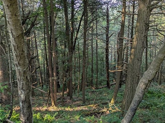 Wooded and fairly secluded parcel on a private road. Property line starts approximately .4 miles from South Gilboa Road. Once some trees are cleared, this property could have gorgeous views. Check out the log cabin on the next parcel, further up the hill from the property. This will give you some ideas of how this property could be cleared and builded upon.