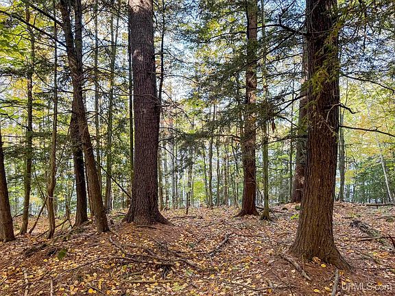 This beautiful 2.72-acre lot on Torch Lake offers 250 feet of waterfront and sweeping northwest views—perfect for enjoying sunset skies. Plenty of frontage for privacy buffers. The property is fully surveyed and features a gentle 20-foot slope down from the road, creating an ideal site for a walk-out basement. Near the water’s edge, a 5–10 foot bluff provides a natural perch for a sauna or deck with elevated lake views. A wide, flat section at the front of the lot spans the entire width, offering a great building area with direct views of the water. The shoreline has a gradual drop-off and a pleasant mix of sandy and rocky sections—and looks accommodating for swimming. Torch Lake is part of a navigable chain that connects to Portage Lake and even Lake Superior, giving you direct access to a wide area via boat. The land is wooded with mature maple forest and a few towering white pines near the water. A rough trail provides a good starting point for future access from the road to the lake. This is a quiet, lower-density stretch of inland waterfront with fewer neighbors. Power is available at the road, and access is easy year-round on a paved, well-maintained public road.