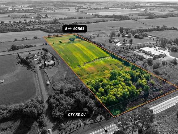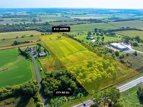 Exceptional 8-acre parcel on County Road DJ featuring a cleared hilltop building site with panoramic views. Wooded frontage provides natural privacy while the elevated homesite offers sweeping countryside views. Survey completed and perc test on file for mound septic system. Driveway access to CTY RD DJ confirmed with County DOT. A-1 zoning permits single family residence with conditional use permit plus outbuildings. Don't miss your chance to own a premier hilltop homesite with privacy, views, and recreation all in one package.