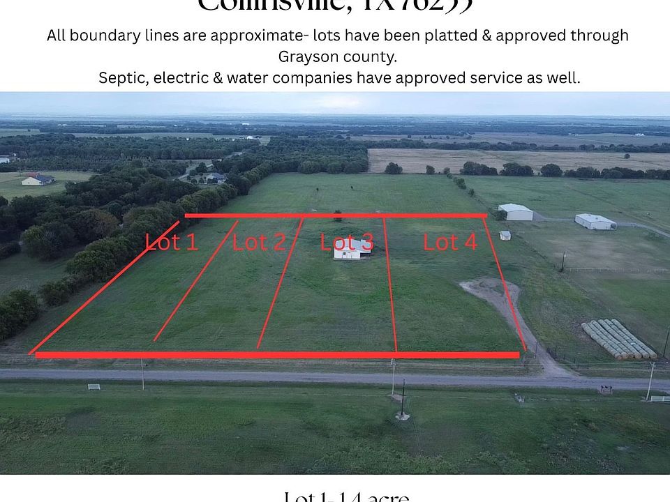 4 lots available on paved country road outside city limits of Collinsville, TX in Grayson County.