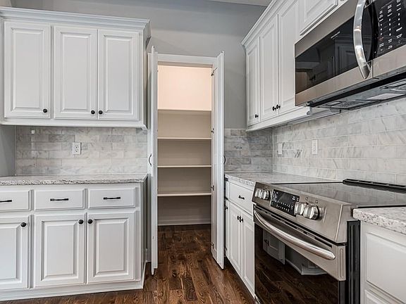 designed for modern living with granite counters, a walk-in pantry, and an open flow to the huge great room with a cozy