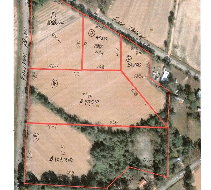 7 acres on Fowler Rd. Stick built homes & barndominiums are allowed but must look like homes. 1600sf minimum. No mobile homes or businesses are allowed. 1 home per parcel.