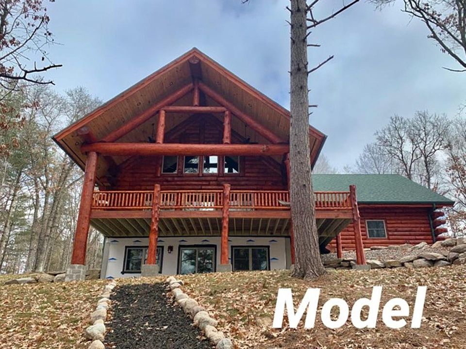 LAKE NOKOMIS NEW CONSTRUCTION! Gorgeous 8” Hand-Picked Thick White Pine, Log Sided home to be set on 3.40 acres with 168.4 feet of waterfront on Gorgeous Lake Nokomis. This Log Home will have Wonderful views of the lake that will take your breath away as well as access to the ATV/Snowmobile trails! Lots of windows, covered lower level patio walkout and covered upper balcony deck areas will give views all day long from all levels of the home. Property will have wooded areas around the home for privacy barrier and incline to the waterfront as home sits high on a beautiful hilltop viewing the lake. The front of property is flat which will have a longer driveway off Point O Pines Rd to the home set back on the lot. Conventional frame, structural log sided home will feature 3 bedrooms, 2 ½ bathrooms, including the master suite with has a large walk in closet and walk in tile glass shower.