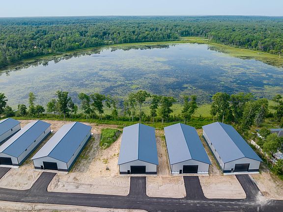 Luxury barndominium on Moburg lake in the Lakeview Storage association.Wonderful opportunity for you to finish your 5,000 square foot building to your specifications. Buildings are plumbed for in-floor heat, floor to ceiling Marvin windows in the gable end, 14x 20 foot overhead door, snow removal, lawn-care, wash bay and clubhouse included.