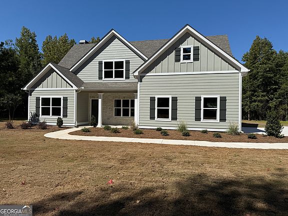 NEW CONSTRUCTION! 5 ACRES WITH NO HOA! FANTASTIC PLAN! "THE JAMESTOWN II" This beautiful 4 bedroom, 3 bath home has foyer entrance, large family room with vaulted ceiling and brick surround fireplace, open concept Kitchen and dining with luxurious designer finishes such as granite OR quartz countertops, tiled backsplash, stainless steel appliance package (wall oven, separate cooktop, vent hood, dishwasher, built-in microwave). Large master suite on the main (Vaulted Ceiling), private bath has double vanity (quartz or granite countertop), huge closet, separate soaking tub and tiled shower. But that's not all, the main floor boasts a guest suite and full bath as well as a formal dining room with an accent wall. Upstairs large bonus room plus 2 additional guest bedrooms and full bath. Estimated Completion Date is mid September 2025. Ask how you can get up to $5000 in closing cost and lender concessions when you use a preferred lender. Directions: From the Thomaston Square take Hwy 74 East - The Rock Road on left - look for signs on the left.
