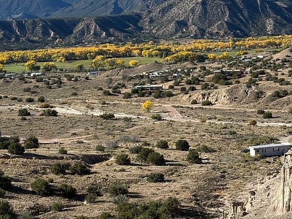 As we glance from the property, there are majestic vistas, whether early morning or late in the evening as the sun sets in the west. The view of the Chama Valley from the highest point of the land is truly breathtaking, especially during the fall when the cottonwood leaves are turning multiple colors. There is a reason why the Plaza Blanca is sought after - the reflection of the sun on the different rock formations, the white sandstone cliffs always give one different feelings. Never a dull moment. The property is 7.97 acres and is accessible from two county roads. The lower elevation road is a cul-de-sac that has an underground transformer ready for an extension to get power to the lot, or not, a solar power grid would be a great addition along with passive solar orientation. Select from many homesites. Drill a water well, many water wells are located near the property, along the lower elevation or install a cistern and harvest the rain water. Purchase now to make a dream come true, or Invest now for the future.