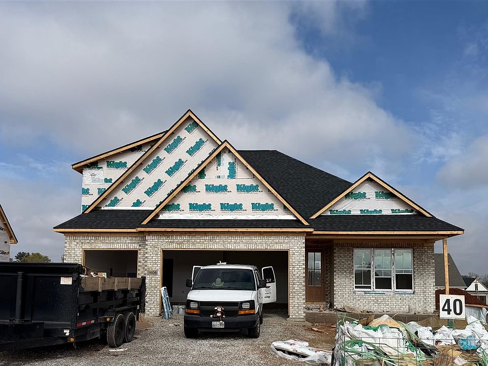 Beautiful new construction home located in the sought-after Creekside Bend community! The spacious living room features a vaulted ceiling and cozy gas fireplace. The gourmet kitchen boasts a large island, custom cabinetry, stainless steel appliances, and a generous walk-in pantry. The main level includes the primary suite with a luxurious en-suite bathroom showcasing a double vanity, large tile shower, and separate soaking tub. The en-suite conveniently connects to the laundry room, leading to a spacious mudroom with built-ins and ample closet space.