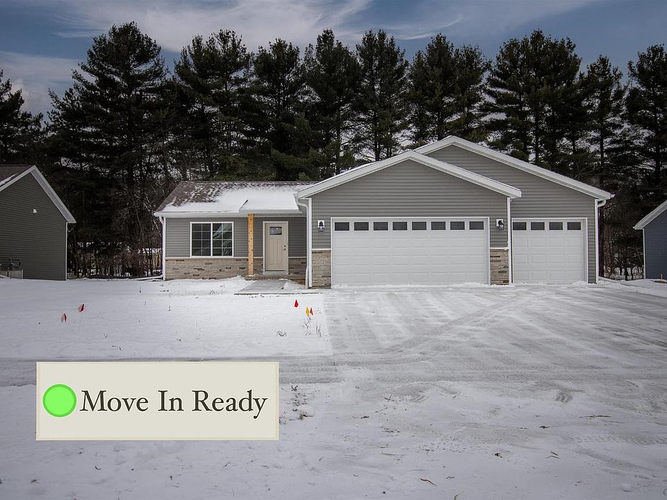 Second Layer of Asphalt Now Down! Occupancy can now be obtained! Welcome to the White Pine plan, a home crafted with care by Green Tree Construction. 3 bed, 2 bath and 2 egress windows. The White Pine Plan features a detailed exterior that will have an irresistible curb appeal. Step onto the front porch and into the home to be welcomed by the inviting entryway, which reveals an expansive open-concept ranch that embodies the perfect blend of style and functionality. The kitchen has finely-crafted cabinetry with soft close drawers and doors to enhance the elegance of your home, and comes with luxurious stainless steel microwave and dishwasher. The kitchen is complete with a large spacious island which will serve as the heart of the culinary space. Adjacent to the kitchen is a thoughtfully designed dining area which seamlessly integrates with the kitchen, enhancing the overall sense of openness and connectivity throughout the home. The entryway from the garage offers a large coat closet/pantry for more organized living, and a first floor laundry area.,For moments of solitude or productive work, The White Pine Plan offers a den/office/bedroom for private sanctuary, which provides a harmonious balance to the openness from the rest of the home. Retreat to the substantial Owner?s Suite, a luxurious haven that features an ensuite bath with ceramic tile, shower, single vanity sinks, and an expansive walk-in closet that promises ample storage and organization. Distinguishing the home further are the hand painted walls in custom colors and hand painted wood trim that adds a personalized touch of sophistication throughout the home. The White Pine plan comes with many practical features such as a Three-Car Garage, seamless gutters, concrete driveway, central air conditioning and a radon mitigation system, which ensures that you feel comfortable and secure in your living environment. All three bedrooms are located on the first floor for easy accessibility and convenience. Have peace of mind with a one-year builder warranty that shows the underlying commitment to the quality and craftsmanship. When you venture down to the lower level, imagine a future large family room just awaiting your personalization, with a bathroom rough plumbed for a potential third bath, with all the mechanicals thoughtfully grouped together for efficiency and connivence. Capture a glimpse of the potential within this exceptional home with photos that showcase the design elements in a similar setting. *** Subdivision will include sidewalks on each side of the street, paid for by the developer so no assessment for the homeowner!!! *** Completion Date December 2025. High speed internet available. *** Other plans available in subdivision. *** **Photos of similar home. Buyer to verify all information.**