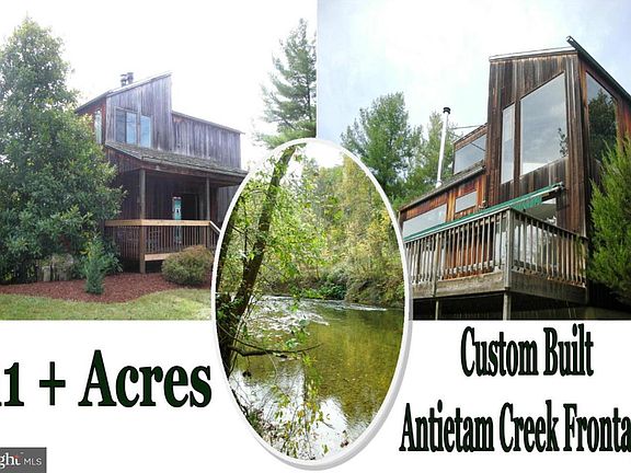 STOP! Don't pay for a rental vacation home for a few weeks or better yet, live on vacation 365 days a year on over 11 acres with Antitem Creek for fishing and Spectacular View which can be yours.  Well located to the Marc Train Staion in Brunswick and White Tail Ski Resort, this private, wooded property is the perfect place to be active during the daytime and relax at night on the deck or on your own private stone beach. .  The house is located at the top of the hill, with 360 degree views.  Built in 1974, it has been updated by the current owner.  Included is a second lot that you could build a new house on while living in the existing one.  Main Residence, Second Home, or Weekend Getaway,  or there are too many options to list!  Both wells were just serviced and have new pumps.  The septic tank was emptied in 2023.   There is a community launch for kayaks as well as private access on the property.  Swim, fish, kayak to the Potomac River, tube, hike,  grown vegetables in the huge fenced garden - there is so much to do! The historic town of Sharpsburg is only a 5 minute drive and has everything you need. Don’t forget to stop at Benders in town for lunch or dinner and a cold drink.  The property is owner occupied, so please give two hours notice before showing. The property is SOLD AS-IS.