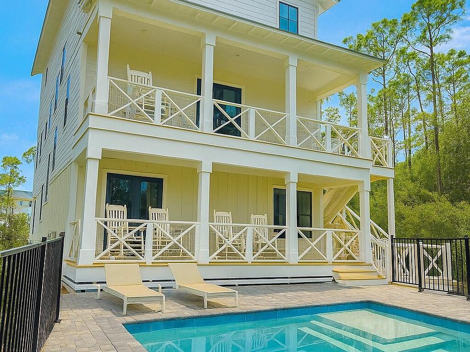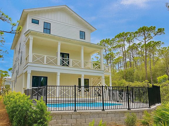 Brand new - 5 bedroom, 5.5 bath house in gated Treetops neighborhood adjacent to Seacrest with excellent rental projections ($150,000+) and deeded beach access just half a mile away. (Free golf cart beach shuttle picks up 50 yards from house) Enjoy a coastal chic, open concept design perfect for entertaining. The main floor (second floor) includes the living room, dining room, kitchen and laundry room. The first floor includes a two-car garage, entry way and two guest suites with private bathrooms. The third floor includes the spacious master suite with a luxurious master bathroom and a huge closet. The third floor also hosts two additional guest suites with private bathrooms. Treetops offers direct access to both 30A and Hwy 98 with easy access to Rosemary, Seacrest and Alys Beach.