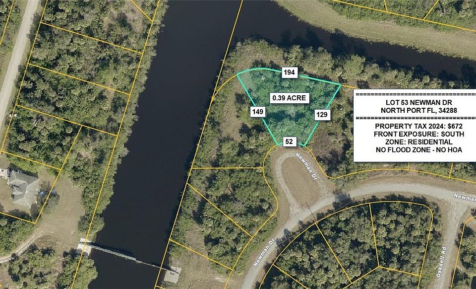 Beautiful waterfront lot in a growing area of North Port, perfect for building your future home with peaceful water views. Conveniently located near shopping, dining, parks, and major roadways. The adjacent lot is also on sale (Lot 52 NEWMAN DR), same owner, sale terms. PACKAGE DEAL IS PREFERRED!