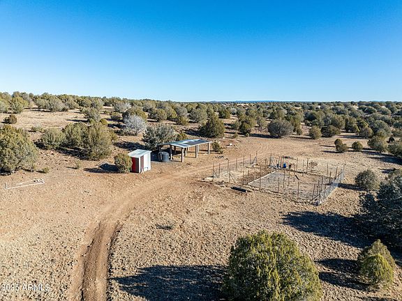 This property has awe-inspiring panoramic views of the rugged Arizona landscape and offers the perfect balance of seclusion and accessibility. Imagine spending evenings watching the sunset then stargazing under dark skies. The property is fully fenced and dotted with plenty of trees that add to the privacy. There is an enclosed structure for hay or tool storage, a separate fenced area with garden beds and the covered ramada has rain gutters that feed to the water tank. Located less than 30 minutes from Ash Fork and Historic Route 66. Enjoy the quiet nature of rural living while still being within a short drive to Flagstaff, Williams & Prescott.