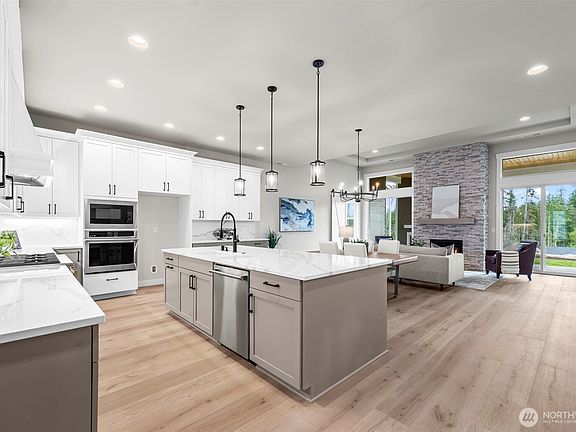 Welcome to the single-level TIMBERLINE by GARRETTE CUSTOM HOMES. This home offers an open-concept floor plan, soaring ceilings, and abundant natural light throughout. A highlight of this plan is the oversized RV GARAGE, offering versatile space for recreation vehicles, a workshop, or extra storage. The gourmet kitchen features a spacious center island, designer finishes, and seamless flow into the dining and great room. The luxurious primary suite includes a spa-inspired bath and walk-in closet, while additional bedrooms and den provide space for guests and a home office. Nestled on 1.43 acres with a private, wooded west facing backyard, this home is minutes from downtown Silverdale and abundant outdoor recreation.