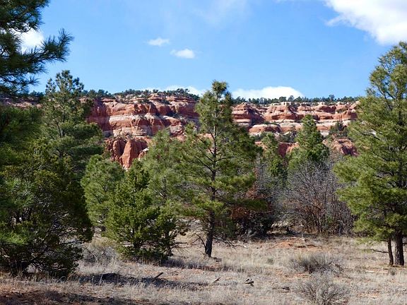 Cloh Chin Toh Subdivision- 7.69 acre property off the main road with gorgeous views of the red striated cliffs to the west, and the Savoya valley and Cibola National Forest to the east. Ponderosa pines as well as pinion and juniper throughout the property. A private well was drilled and cased, but no pump. Electric at the east property line, with the electric pole near the well, but no electric hook up yet. Gently terraced, lots of privacy and places to build. Next to common land for more space to roam. Close to national forest and Ramah reservoir.