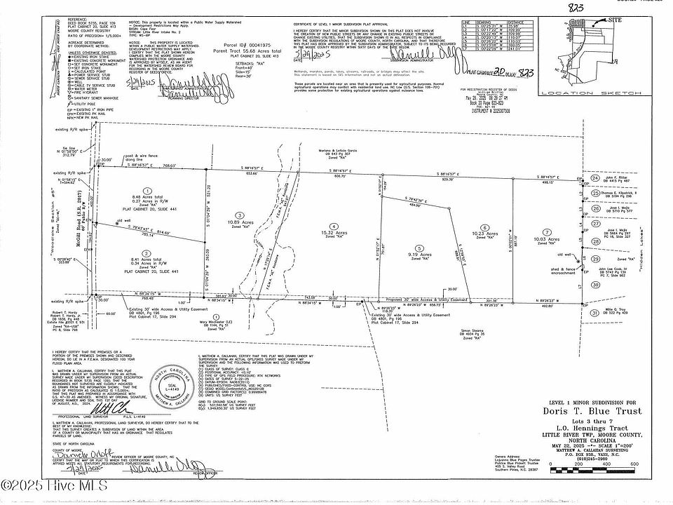 Five lots (Lots 3-7) remain available as of 11/29/2025, ranging from approx. 9 to 15+ acres.