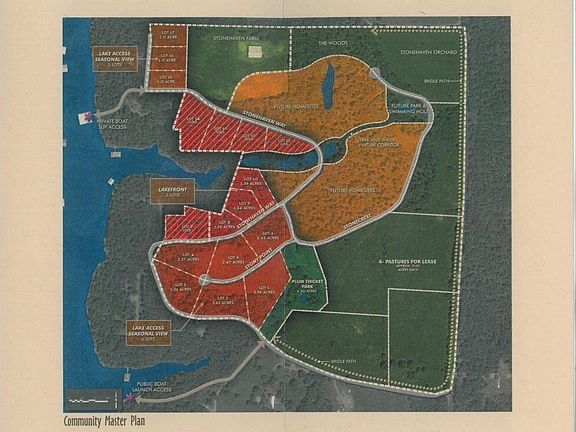 Stonehaven; A planned, (soon to be-gated) community of acreage lots. Lakefront, Lakeview, Pond-front, Wooded and Open-Field lots Available. Quiet, peaceful neighborhood with a blend of cedar and traditional homes. Community amenities include designated park area, two ponds, boat dock and nearby community boat ramp. This is the place for full time or part time lake living in style. Lot 6 is open field and back to woods.