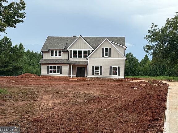 LOOKING FOR PRIVACY? Welcome to The WHITSHIRE Plan on 5 acres with Fiber Internet Available! This exquisite 4-bedroom, 3.5-bathroom home offers the perfect blend of luxury and comfort. As you step inside, you're greeted by a spacious foyer that leads into a large family room with soaring vaulted ceilings and a cozy wood-burning fireplace, creating a warm and inviting atmosphere. The open-concept kitchen and dining area are designed for both style and function, featuring luxurious finishes such as granite countertops, a tiled backsplash, sleek glass pendant lighting, and modern stainless steel appliance package (including built-in microwave, wall oven, cooktop, vent hood, and dishwasher). The spacious primary suite, conveniently located on the main level, offers a huge walk-in closet and a private bath with a double vanity (with granite countertops), a tiled shower, and a large soaking tub-perfect for relaxation. Upstairs, you'll find 3 generously-sized bedrooms, 2 full baths, and a finished loft, offering plenty of space for family and guests. Don't miss the smart home features: keyless deadbolt, select smart switches, video doorbell & more. Designer selections in photos. Estimated Completion date is mid September 2025. Builder requires a 2% construction deposit and offers a $2,500 credit with use of a preferred lender - plus an additional $2,500 from the lender! Directions: From the Thomaston Square take Hwy 74 East - The Rock Road on left - look for signs on the left.