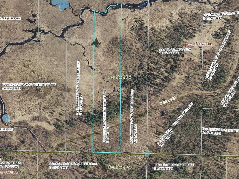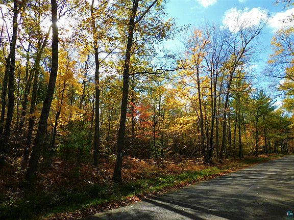 There are two leveled areas on both sides, close to the road, suitable for building a home or a cabin. A fantastic hunting, recreational, or home/cabin site that is secluded on a paved road, only a few minutes from Iron River! Surveyed 12.94 acres wooded lot with sandy soil and 370 feet of river frontage from "Iron River" (Class "A" spring fed) to fish, Brook, and Brown Trout. An excellent river to canoe or kayak to enjoy the great outdoors with your family and friends. This property features mature trees, including older Oaks, Maples, Birches, white pines, and Balsam Trees. Several deer trails throughout this property, and various other wildlife abounds. This private property has some of the best waterfowl hunting in Northern Wisconsin. This unique parcel offers a diverse habitat that attracts a wide range of wildlife, including big whitetail deer, turkey, ducks, and grouse. Two acres are buildable on high ground for a home/cabin site. The parcel on the South side of the road has spectacular views perched on a hill, and the other site is level on the road (setback 63' center of the road). High-speed internet via electric, phone, and fiber optic cables is available on the road. The sandy soil will support a conventional septic drain field and a 5-foot water table for a drilled well at a future home or cabin site. Building a home or cabin setback requires 15 feet from the property lines and 63 feet from the center of the road. Please confirm with the Bayfield County Zoning website for setbacks to build and other zoning questions. Only a few minutes to town in Iron River with many amenities.