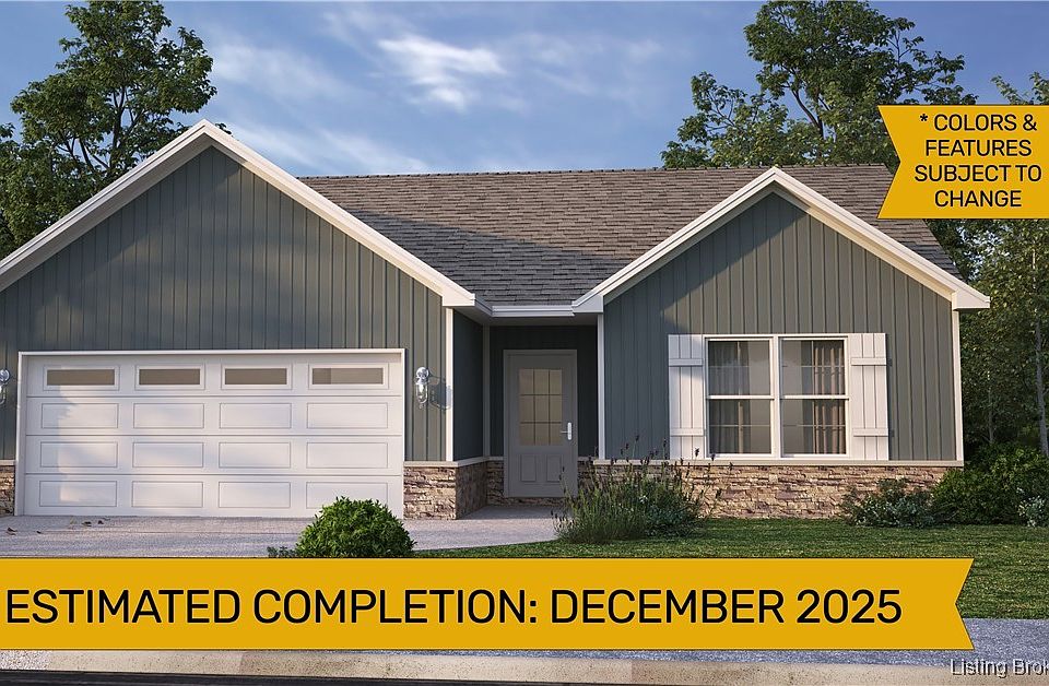 Premier Homes of Southern Indiana presents the beautiful 'Juliana' floor plan! This 3 Bed/2 Bath home features a cozy covered front porch, foyer, open floor plan, laundry room with pocket door, and spacious great room that walks out to partially covered patio! The eat-in kitchen offers stainless steel appliances, granite countertops, pantry, and roomy breakfast nook. Primary suite offers an elegant trey ceiling and en-suite bath with double vanity, water closet, large walk-in shower, and spacious walk-in closet. This home also includes a 2 car attached garage w/keyless entry & a RWC home warranty! Save $$$ toward closing costs by using one of our recommended lenders! Builder is a licensed real estate agent in the state of Indiana.
